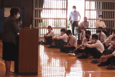 メッセージの背景にあるご自身の経験も話してくださり、生徒たちは引き込まれていました。