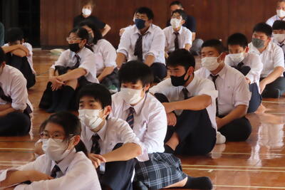 今回もリモート開催で、生徒会を中心とした代表生徒だけが会場で参加しました。