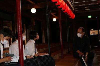 見学をしていると、山鹿灯籠の紹介映像の中に鹿本農業高校伝承芸能部の練習風景がありました
