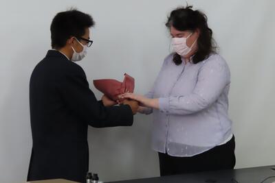 「2016年に来日し、それから5年以上ずっと鹿本農高に授業に来ていたので、お別れするのがとても寂しいです。日本に来てからの良い思い出は、すべてこの学校で作ることができました。優しい生徒の皆さんや先生方が大好きで、毎月授業に来るのがとても楽しみでした。ありがとうございました。」
