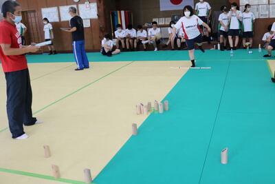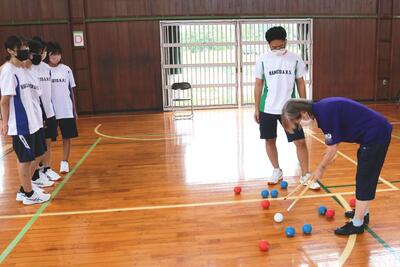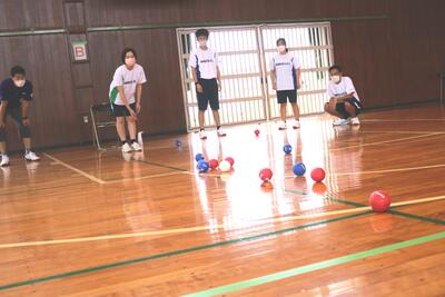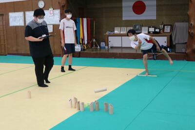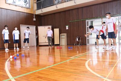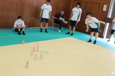 終業式が行われた7月20日の午前中は、クラスマッチを行いました。猛暑や雨の可能性も考え、今回は「モルック」と「ボッチャ」という屋内競技を行いました。