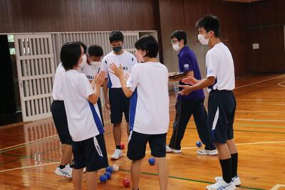 どちらも初めて競技する生徒がほとんど(全部?)のため、生徒会が作成したルール解説動画を見てから競技を開始しました。