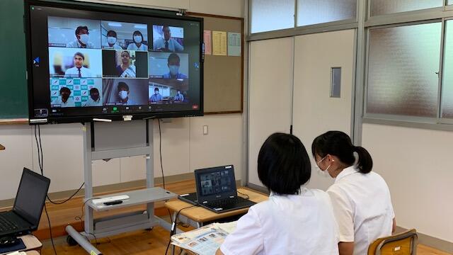 研修では、オンラインではありますが、海外で活躍されている日本人の方から講話をいただいたり、現地の高校生と交流をしたりと、とても充実した3日間となりました。本校以外にも、県内の専門高校に通う生徒が参加しており、様々な意見交換も行うことができたようです。