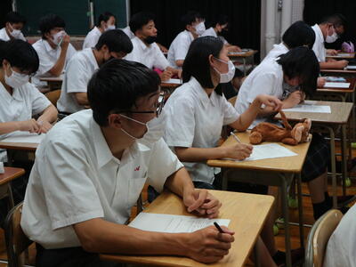 進路決定が目の前に近づいているだけに、生徒たちは真剣に見ていました。