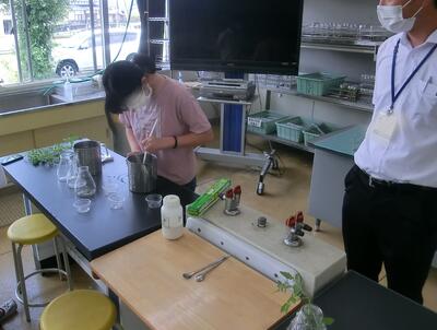 農業コースは、「土以外で植物を育てよう」というテーマのもと、水耕栽培技術や肥料の効果について考えました。