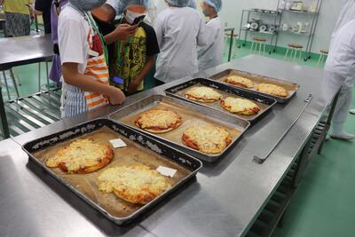 食品コースは、ピザ作りから、微生物の働きや発酵などについておいしく学びました。