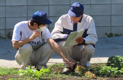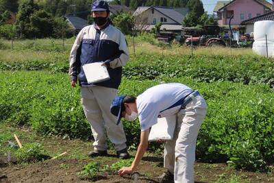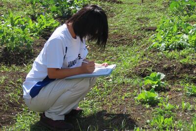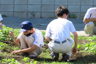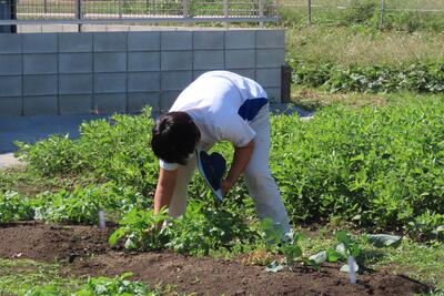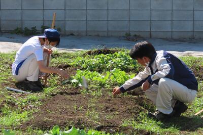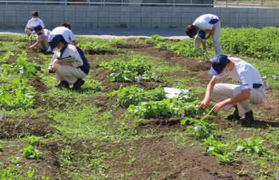 各自の畑に植えた作物の成長観察と手入れをしていました。