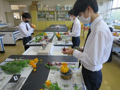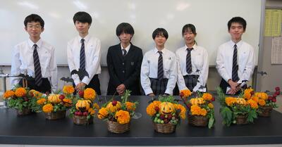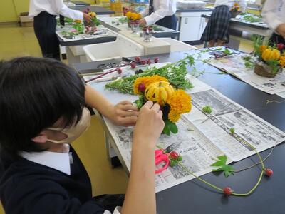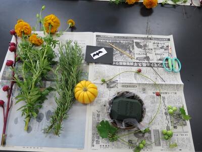 今回の部活では、ハロウィンをイメージしたアレンジメント作りに挑戦しました。