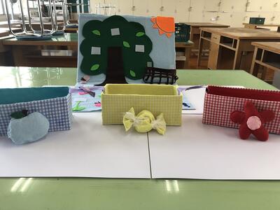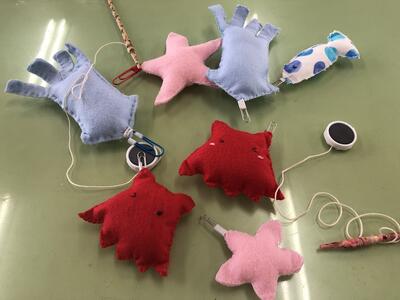 それぞれ班に分かれて、興味を引くデザインや安全面を工夫しながら作り上げ、とてもかわいいおもちゃが出来上がりました。