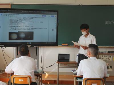 園芸技術科1年生の発表会の続きです。2人1組で調べた太陽系の惑星について発表します。