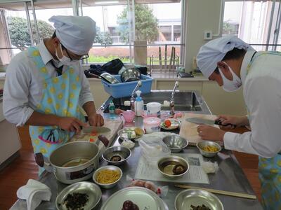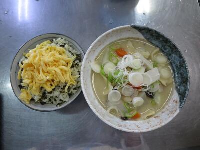 今回のテーマは郷土料理高菜ご飯とだんご汁を作りました。