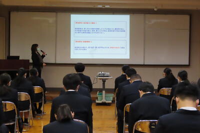 など、DVDや実体験を交えたさまざまなお話があり、生徒も真剣に聞いていました。