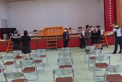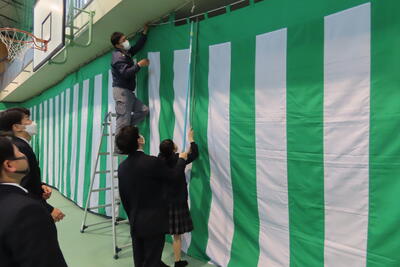 体育館では翌週の式典の準備が。