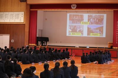 鹿農集会では、生徒会より学校生活、校則などについて説明がありました。