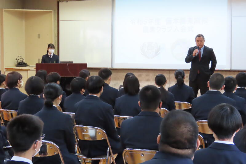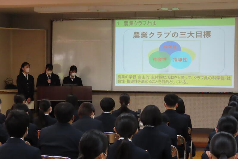 農業クラブの三大目標や各種競技会、そして今年行われる全国大会熊本大会についての紹介などがありました。