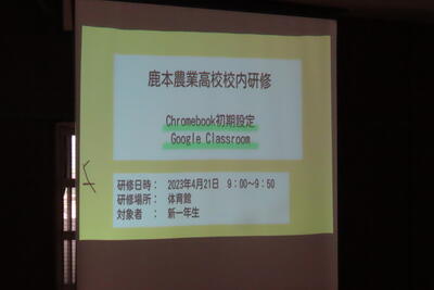 先日、1年生のタブレット設定・使用についての研修を行いました。