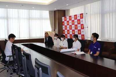 10月25日~26日に開催される日本学校農業クラブ連盟全国大会熊本大会で本校は意見発表会の運営を担当します。開催前に生徒実施委員長と副委員長が早田順一山鹿市長と熊本県鹿本地域振興局長を訪問しました。生徒実施委員長より大会の概要や農業クラブについて説明し市と県からの開催協力を依頼しました。