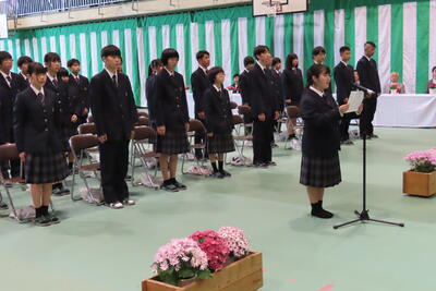 生徒会長による歓迎のあいさつ「ようこそ、鹿本農高へ」