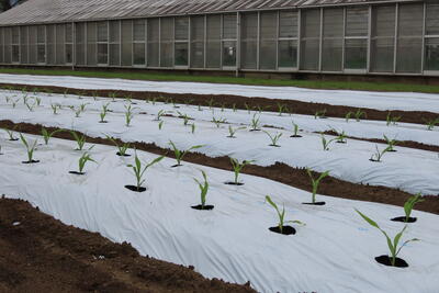 背丈の違いがわかりますか?植える日にちや、マルチの有無など工夫と学びが詰まっています。