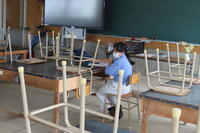 4月5日に入学式の式場作成のため登校した生徒会役員の生徒たちが