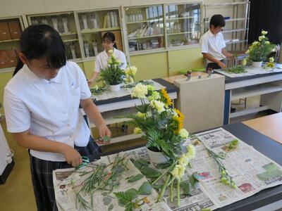 新学期より、フラワーアレンジメント講習が始まりました。