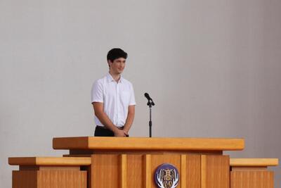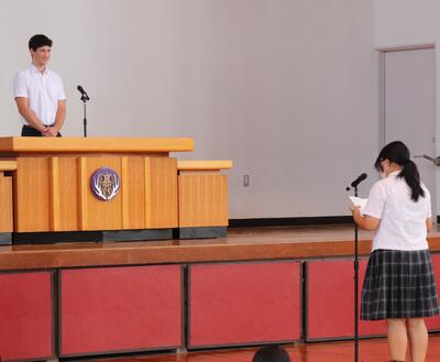 生徒代表挨拶や待機しているときもニコニコでした