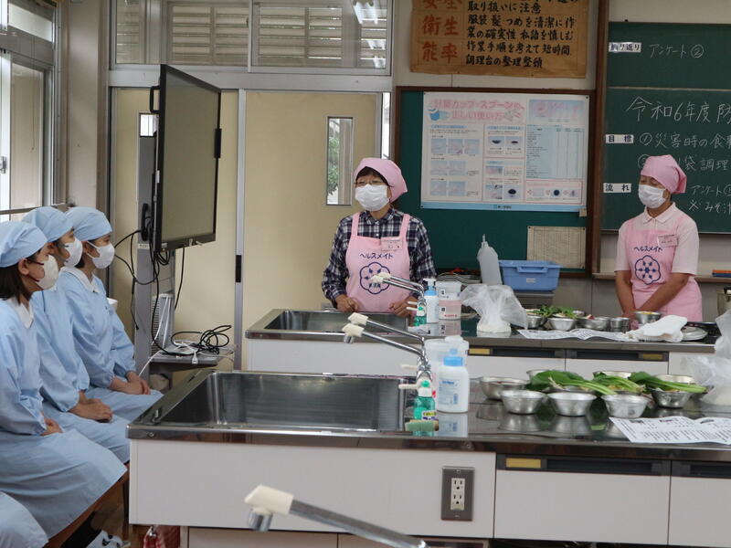 山鹿市食生活改善推進員協議会から講師をお招きし、3年H科が健康を考えた災害時の食事について学びました。
