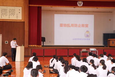 山鹿警察署の生活安全係の方を講師としお招きし、薬物乱用防止教室が行われました。