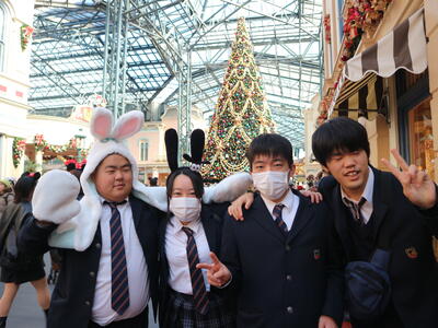 舞浜駅を降りた途端、他校の修学旅行生も大勢来ているので、一生懸命前の人について行っても、いつの間にか違う人について行きそうになる汗・焦るという危機を何度も乗り越えてゲートに入りました。