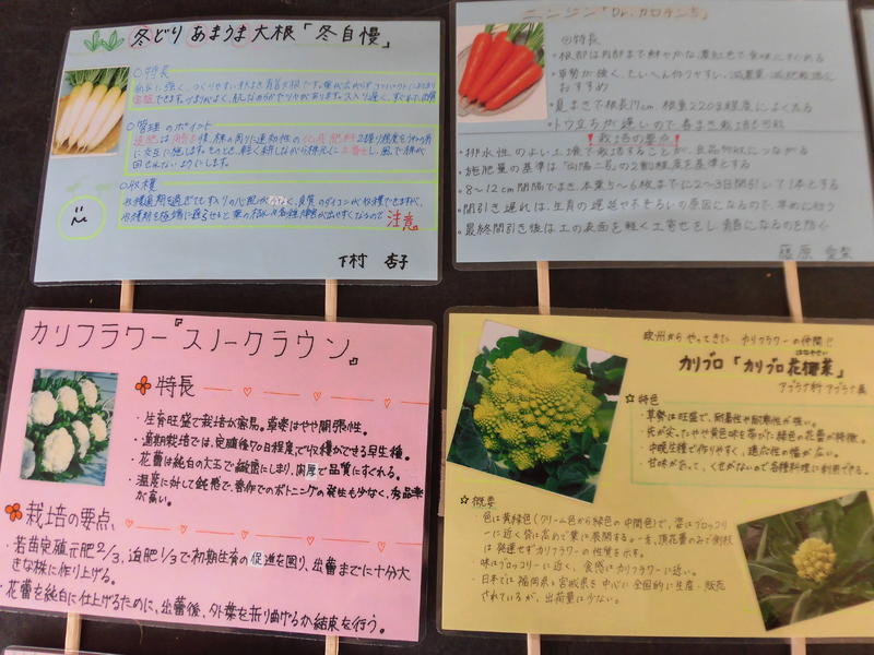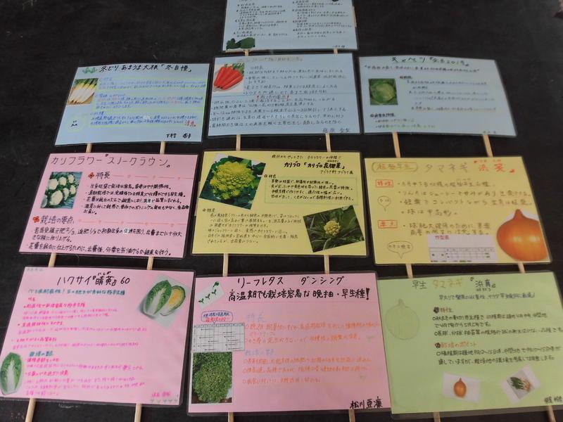 【生活デザイン科】野菜の立て札が完成 投稿日時 : 2020/09/29 生活デザイン科 2学期に作る野菜の表示板を1年生が作りました。 写真を入れたり、品種名や栽培のポイントなど、それぞれがわかりやすくまとめることができました。 これからしっかり育つように栽培していきたいと思います