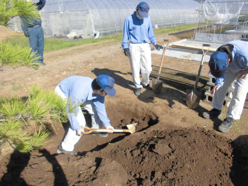 松や池をどのように配置したらよいか、実際の場所で検討しました