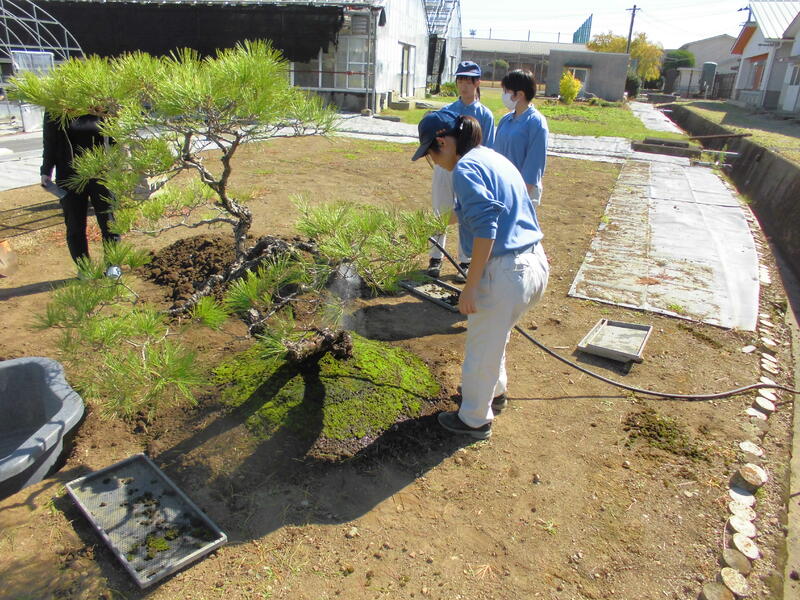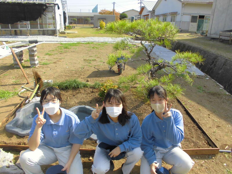 生活デザイン科3年生、地域創造コースの生徒で「和風の坪庭」をつくりました