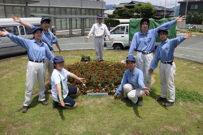 今日は生活デザイン科で栽培している花の苗を持って、山鹿市役所へ行ってきました。