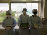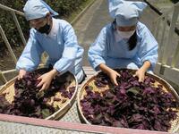 6月12日 学校の花壇で栽培した赤シソを収穫し、洗って天日で乾かします。