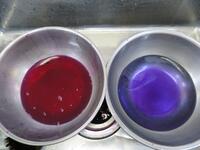 これに酢を入れるときれいな赤色になります。梅干しも白梅酢の中にシソを入れるので、きれいな赤色に染まるんですねひらめき