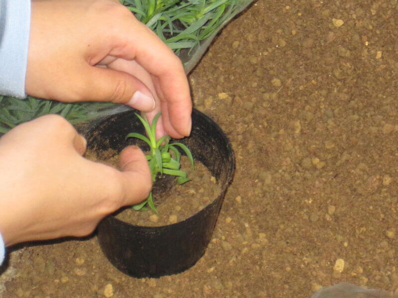 授業でカーネーションの鉢上げを行いました。