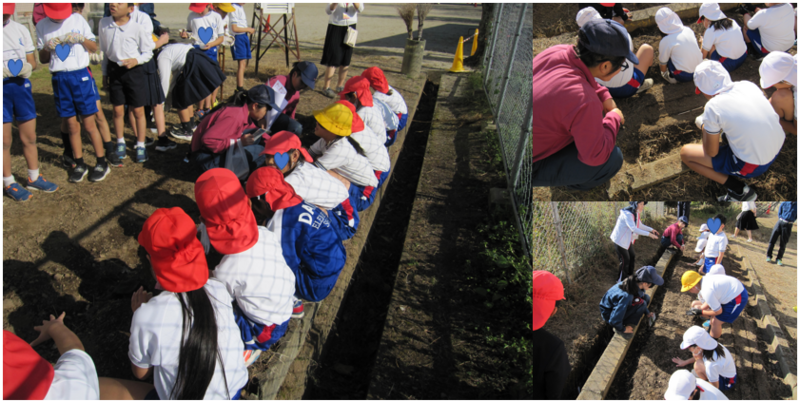種まき開始です。小学生のパワーに負けそうになりながらも丁寧に種まき方法を指導出来ました ヽ(^。^)ノ