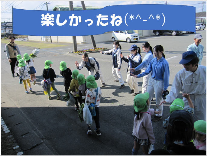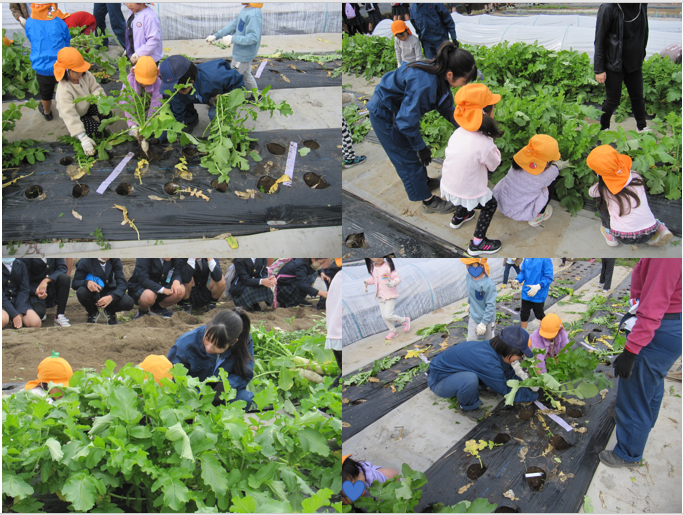 生徒たち緊張するかな?と心配しましたが園児たちとのダイコン収穫に集中していてそれどころではなかったようです(^^♪