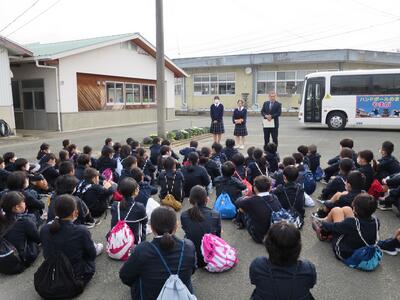 バスからぞろぞろと降りてくる小学生・・「おはようございます」という元気のよい挨拶に、こちらも気が引き締まります。