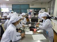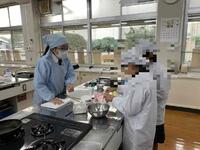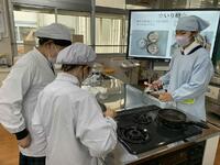 高校生の話を真剣に聞きながら調理を進めていきます。