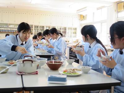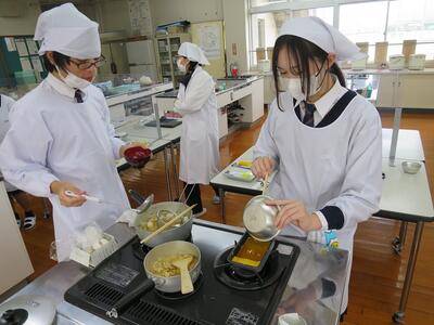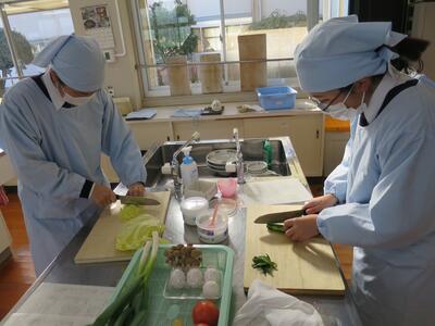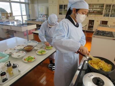 生徒たちは今まで作った料理の話をしたり、思い出を振り返りながら作っていました。