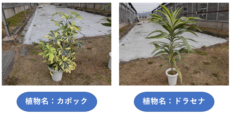 樹形が乱れた「カポック」と大きくなり過ぎた「ドラセナ」を用意しました。