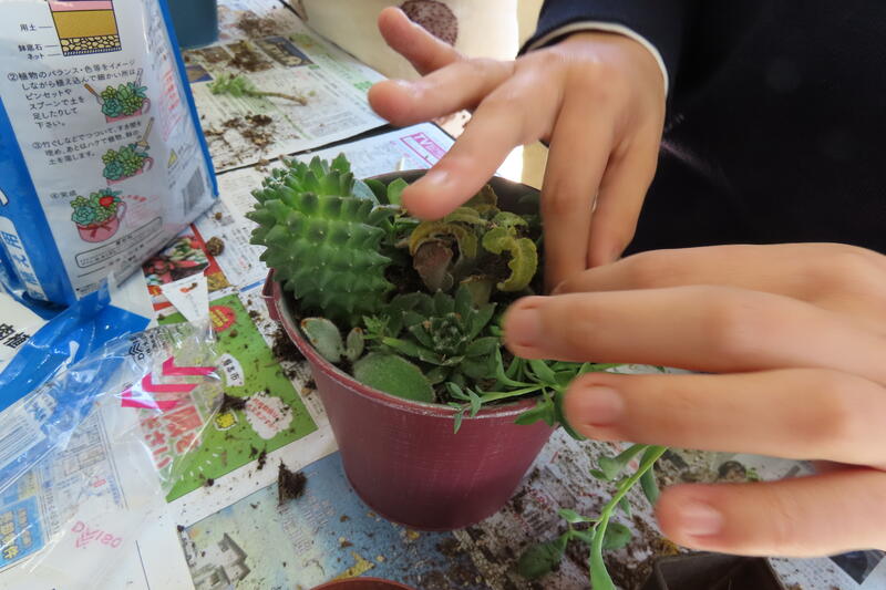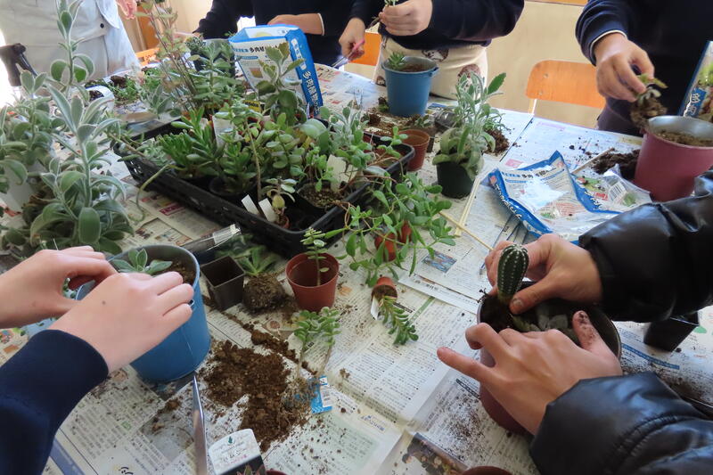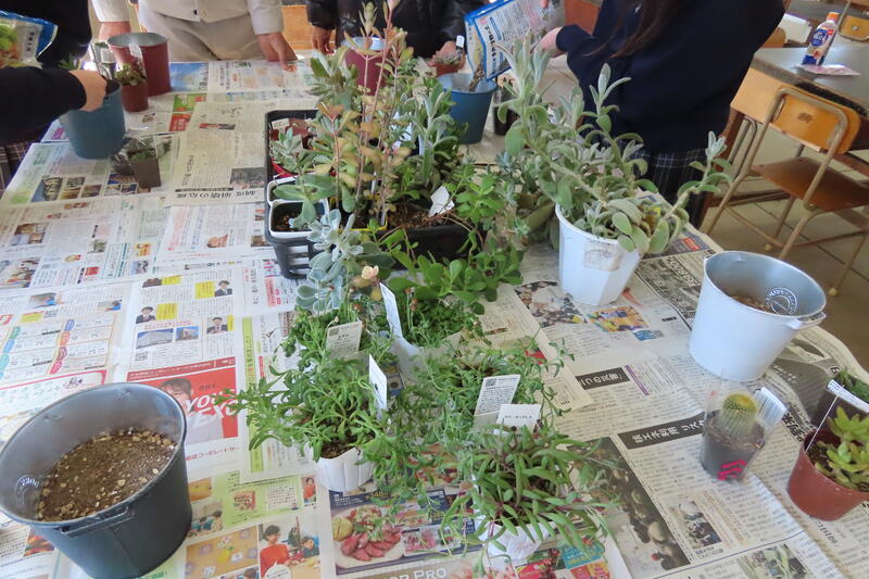 生活デザイン科の3年生が「多肉植物の寄せ植え」をしました