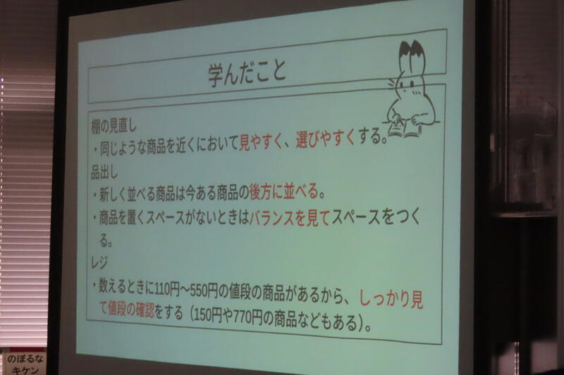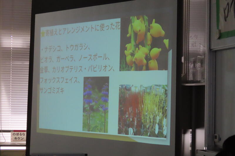 テーマは「来民うちわ ~ハーブオイルで柿渋の代用ができるかの研究~」、「メダカの色揚げについて」、「山鹿灯篭を全国に広めたい!」、「農業クラブについて地域に広めたい!」などがありました