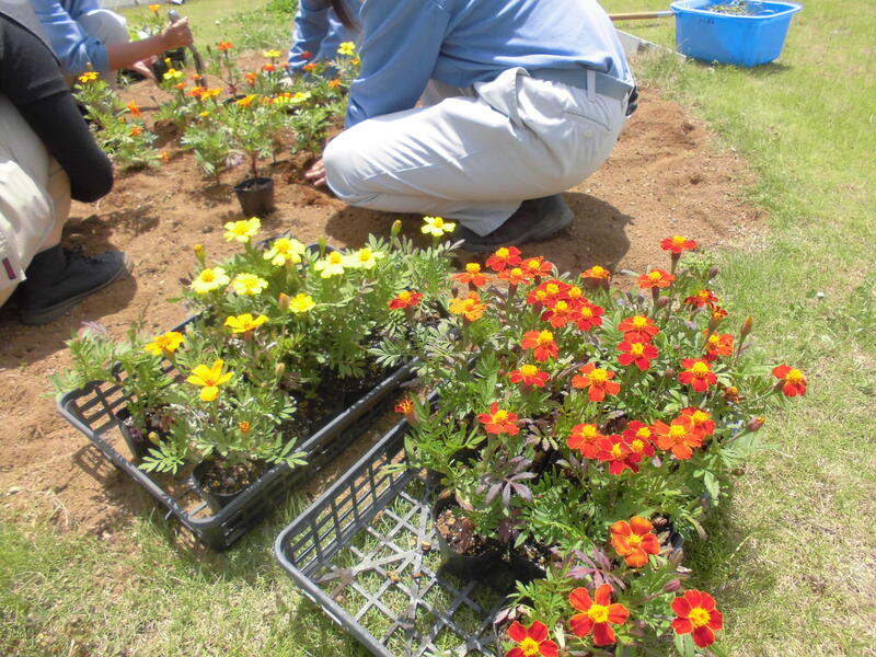 準備した草花苗は、自分たちで育ててきた「ベゴニア」3色(ホワイト・レッド・ピンク)
