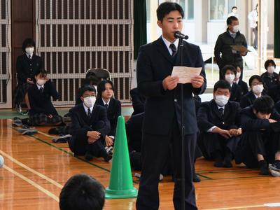 ① 生徒会長から歓迎の挨拶