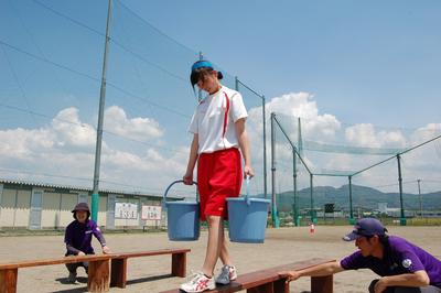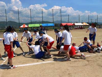 プログラムNo.8 水運び 新競技です。水が入ったバケツを持って走ります。どんなに速く走っても、水をこぼしすぎると失格です。一本橋やハードルが行く手を阻みます。 先生や保護者も参加しました。 プログラムNo.9 棒引き 中央におかれた9本の棒を取り合います。競技名は「女たちの熱い戦い!」。その名の通り、熱い熱い戦いが繰り広げられました。 棒が減ってくると、1本の棒にたくさんの生徒が集まります。 (つづく) |