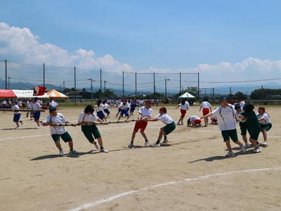 プログラムNo.10 綱引き 優勝は保護者・先生チームでした。 なんて大人げない(笑)。