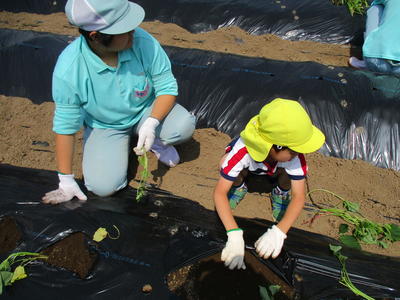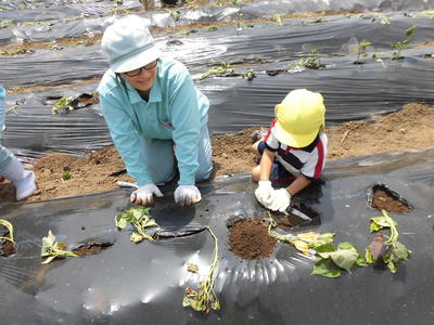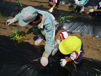 【生活科学科】保育園との交流学習~サツマイモ苗植え~