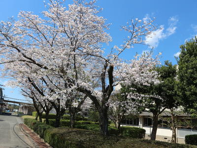 さて、県内各所で桜がきれいに咲いていますが、本校の桜も満開を迎えています。
